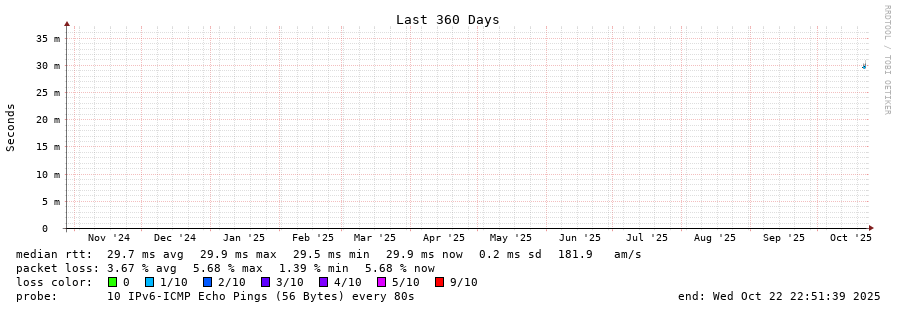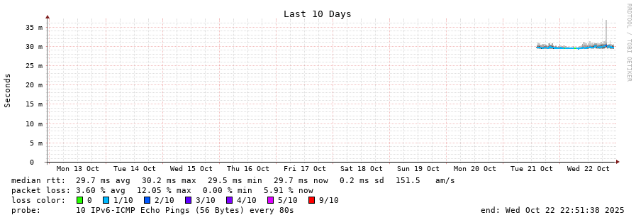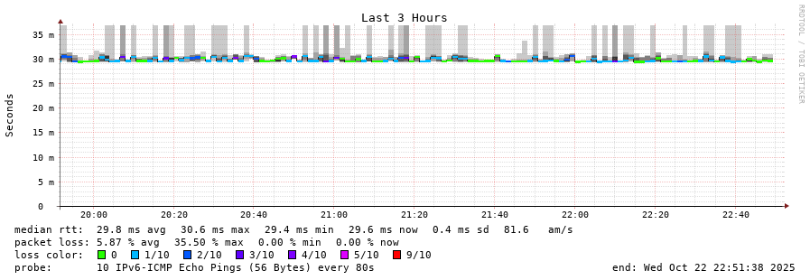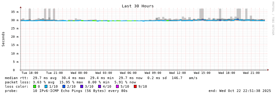 traceroute to 2c0f:5400:2:15::1 (2c0f:5400:2:15::1), 30 hops max, 80 byte packets - Generated at 2025-10-22 02:30:01