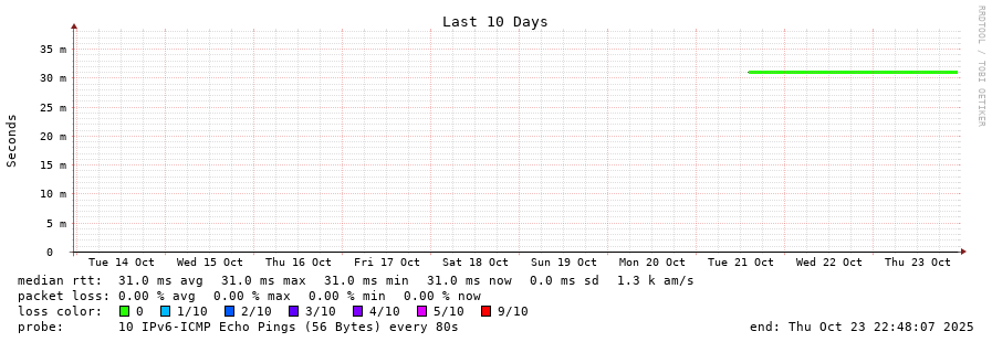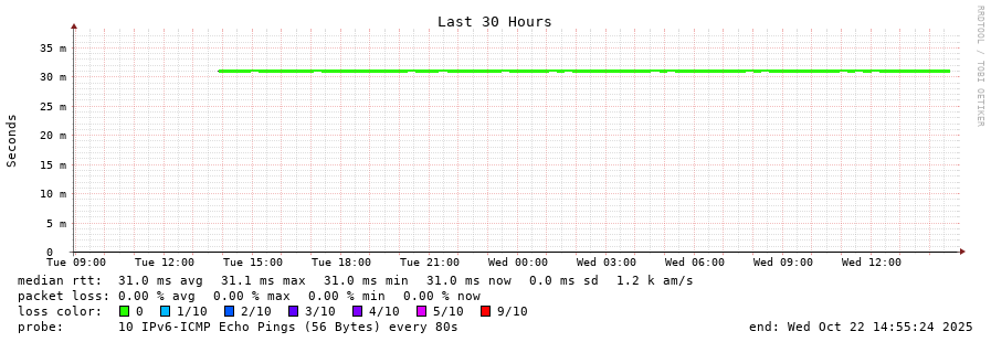traceroute to 2001:b68:d::28 (2001:b68:d::28), 30 hops max, 80 byte packets - Generated at 2025-10-22 01:00:01
