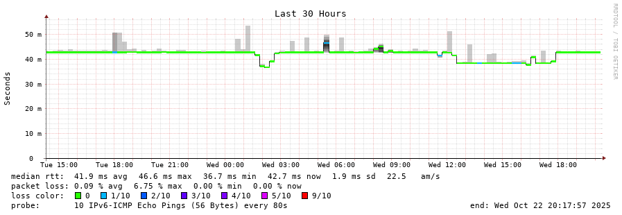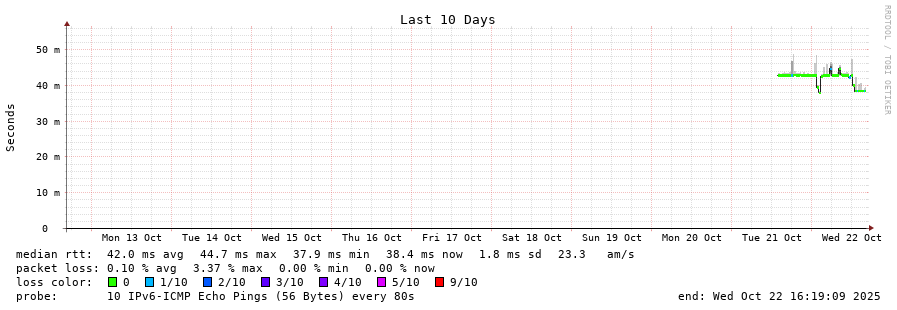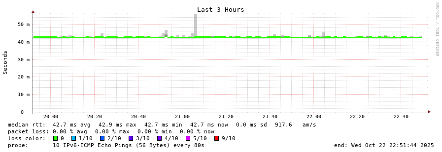 traceroute to 2a0c:9a40:8610:e3f::1 (2a0c:9a40:8610:e3f::1), 30 hops max, 80 byte packets - Generated at 2025-10-22 01:00:01