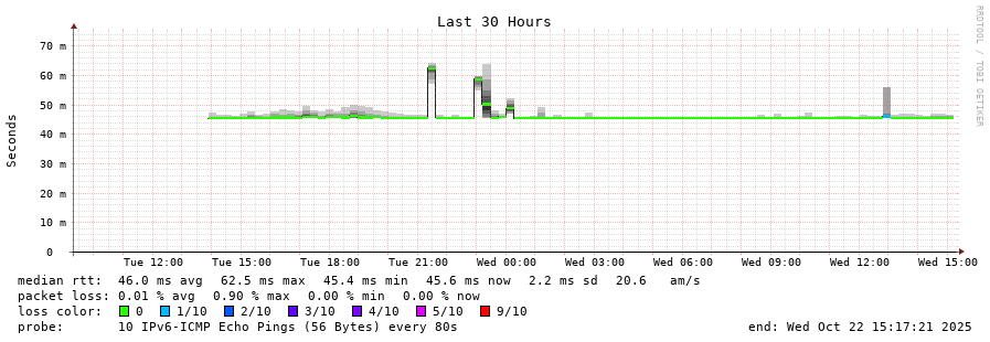 traceroute to 2a04:9dc0:0:a51::afaf:1 (2a04:9dc0:0:a51::afaf:1), 30 hops max, 80 byte packets - Generated at 2025-10-22 01:00:01