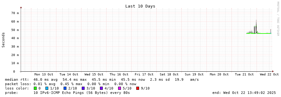 14 > 2a04:9dc0:0:146::2 (2a04:9dc0:0:146::2) [AS9009] 45.671ms 44.848ms 44.849ms
