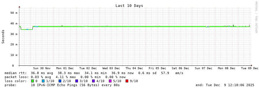 10 > 2a02:2f00:8708::b7 (2a02:2f00:8708::b7) [AS8708] 29.645ms 26.997ms 26.713ms