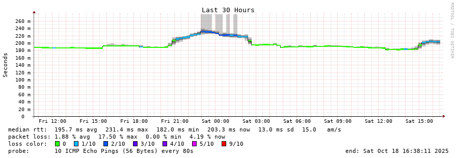 traceroute to 177.53.104.225 (177.53.104.225), 30 hops max, 60 byte packets - Generated at 2025-10-18 08:45:01